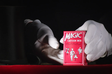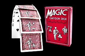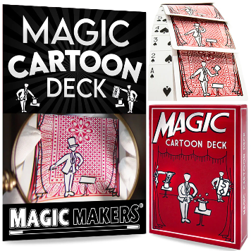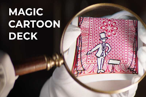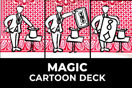 Observa cómo el mago ilustrado en el reverso de las cartas cobra vida y saca una carta de su sombrero que resulta ser la carta elegida al azar por tu espectador. ¡ Incluso podrías llamarlo un espectáculo de «cartoon»!