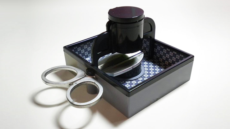 El mago muestra una pequeña caja que contiene un par de tijeras. Mete su dedo a través del tubo en el centro de la caja y lo corta por la mitad con las tijeras. Pero agárrense: ¡el mago entonces levanta el tubo para mostrar que el dedo está realmente cortado por la mitad! El mago puede usar un lápiz o bolígrafo prestado del espectador en lugar de su dedo.